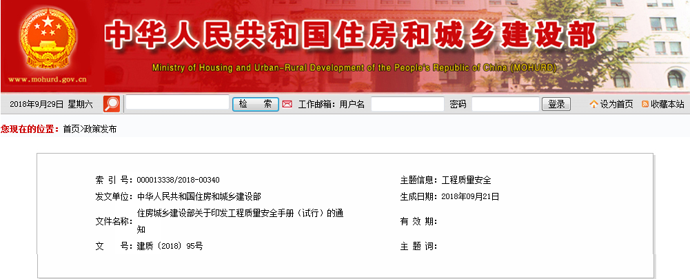 住房城乡建设部关于印发工程质量安全手册(试行)的通知